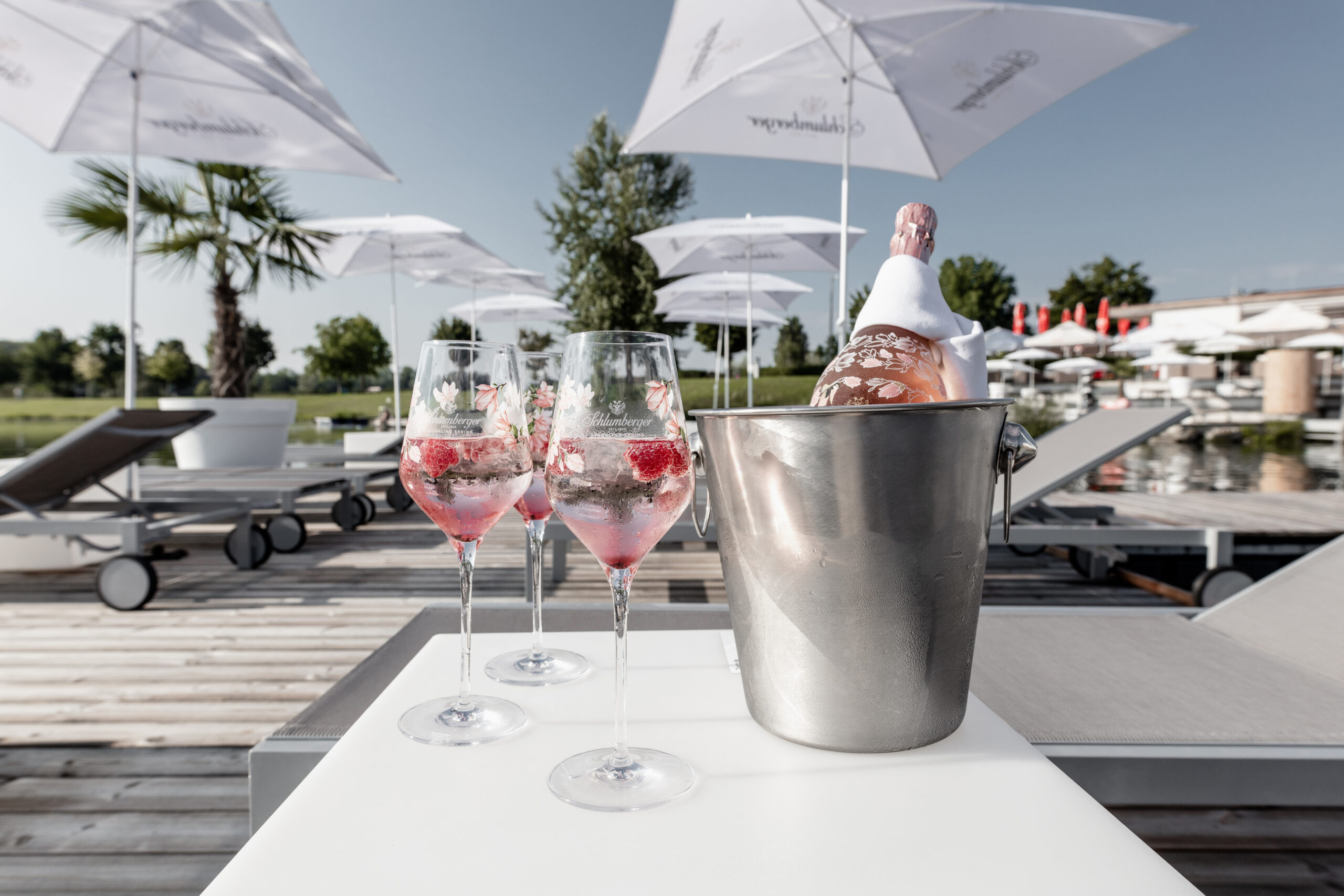 Genießen Sie leckere Cocktails, Sommerdrinks, Longdrinks, Bier, Weine, Moet ICE, Schlumberger on Ice, hausgemachte Limonaden und natürlich andere alkoholfreie Getränke…