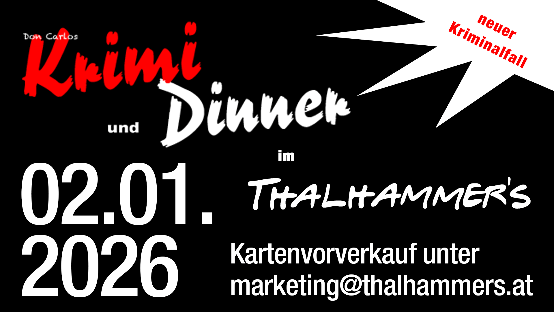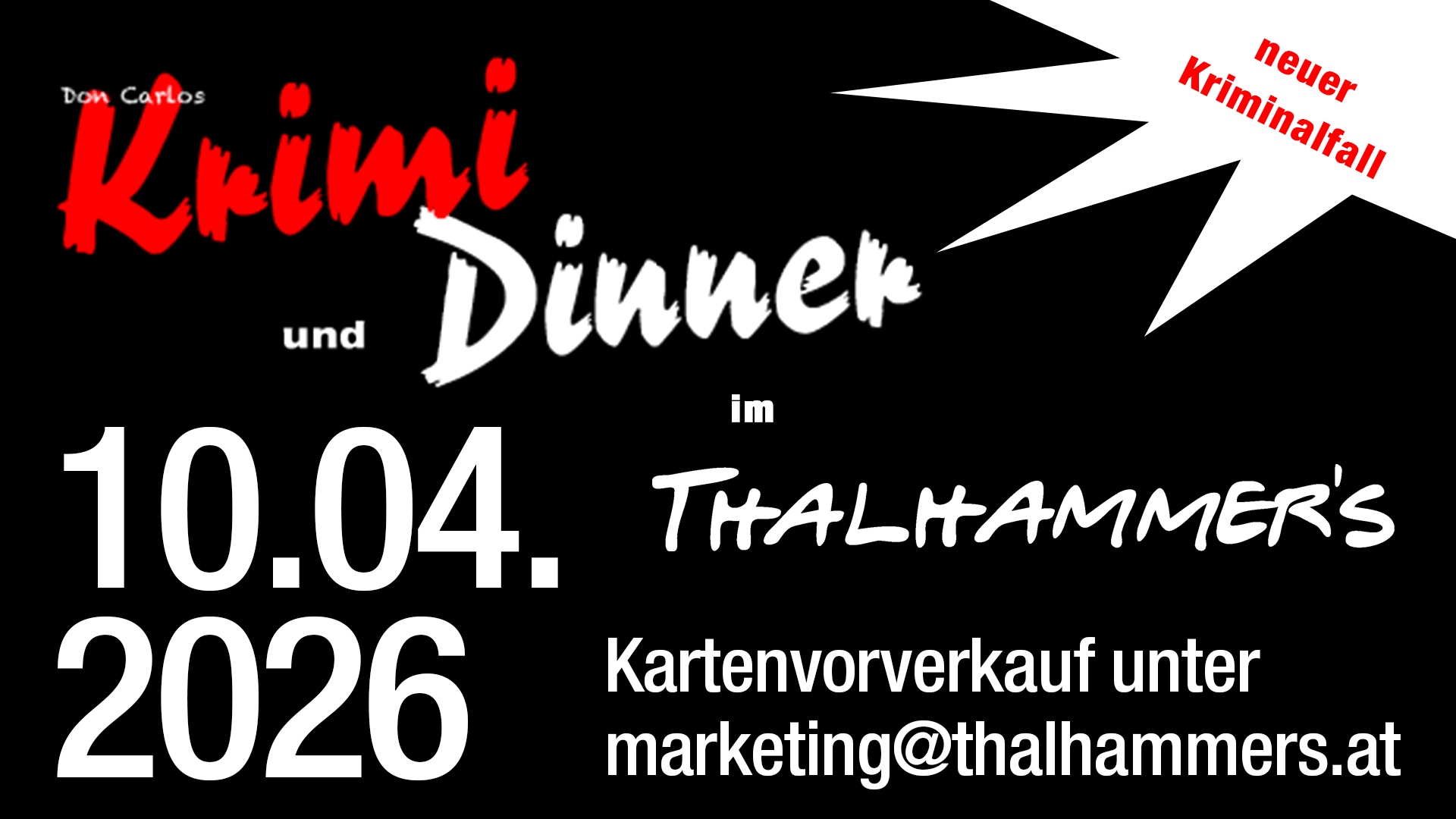 Reservierungen unter reservierung@thalhammers.at oder telefonisch unter 0699/1160 1958.